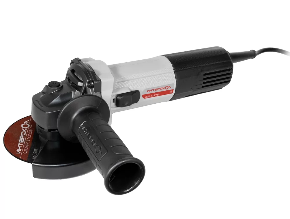 - Компактная угловая шлифовальная машина («болгарка») ИНТЕРСКОЛ УШМ-125/750 обладает минимальными размерами (диаметр моторного блока 57 мм), массой всего 1,6 кг и переставляемой вспомогательной рукояткой для максимально удобной работы даже в продолжительном режиме. Бронированный электродвигатель (бандаж из арамидной нити + заливка специальным компаундом), лабиринтные уплотнения и шпиндель на двух подшипниках качения внутри низкопрофильного корпуса редуктора позволяют обрабатывать практически любые материалы, включая различные металлы, бетон, керамику, натуральный и искусственный камень, легко добираясь до самых труднодоступных зон в углах конструкций, нишах и т.п.