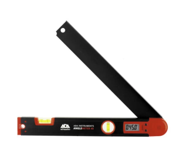 - Угломер ADA AngleMeter 40 предназначен для измерения углов при плотницких и столярных работах. Корпус прибора выполненный из анодированного алюминия. Длина угломера 40 см. Массивный профиль не боится ударов и падений. Измеренные значения и режимы вычислений отображаются на ЖК дисплей.