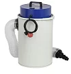 Воздух со стружками всасывается через входной патрубок (диаметром 100 мм) и попадает в цилиндрический корпус установки. Наиболее тяжелые частицы под действием силы тяжести падают вниз. Затем воздух проходит через бумажный фильтр-мешок и попадет в фильтр-картридж (гофрированный полиэстер) и выходит наружу. Степень фильтрации 0,5 мкм - самая большая в линейке вытяжных установок BELMASH.