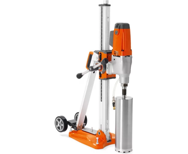 Установка алмазного бурения Husqvarna DMS 240 - профессиональная алмазная установка с двухскоростным двигателем для выбора оптимального режима работы, максимальный диаметр алмазных коронок 250 мм. Оснащена электронной защитой от перегрузки и светодиодным индикатором нагрузки, предохраняющими электромотор от перегрева. Опорная стойка оснащена системой вакуумного крепления, транспортировочными колесами, отклоняется на угол до 60° для бурения отверстий под наклоном, задняя опора снабжена жесткой системой фиксации для стабильного бурения под углом. Отлично подходит для бурения отверстий в полах, стенах, крышах, например, для бурения каналов под сантехнику, вентиляцию, установки шлагбаумов, дорожных знаков.